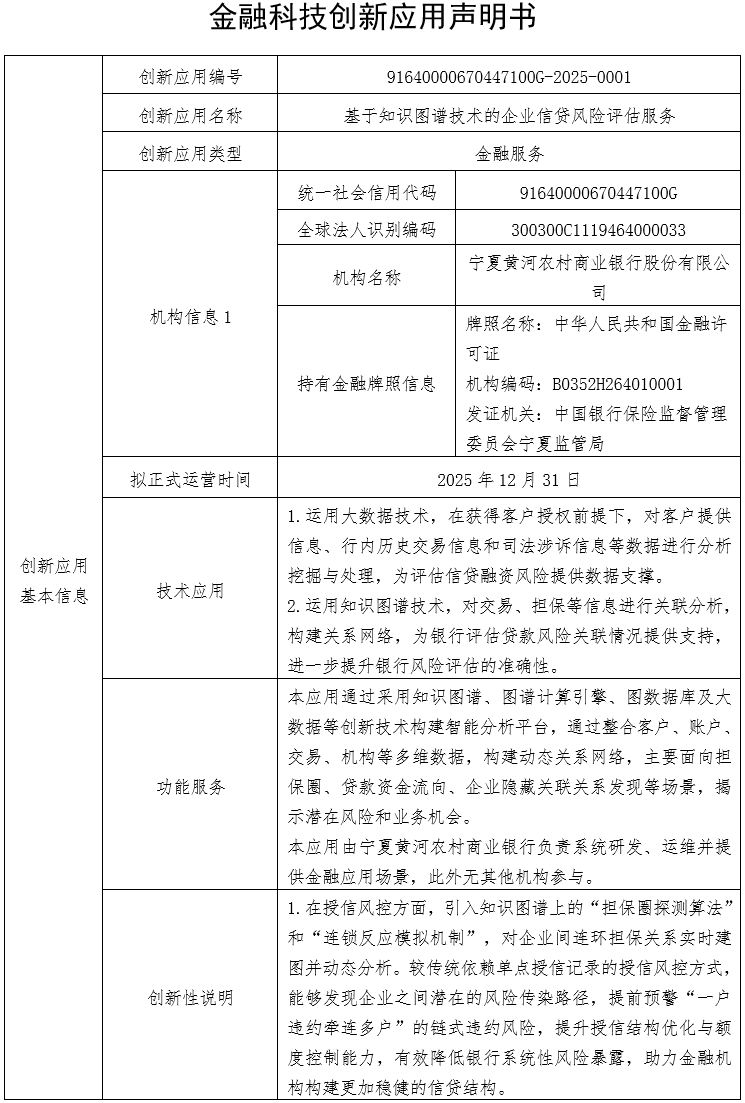 金融科技创新应用声明书:基于知识图谱技术的企业信贷风险评估服务