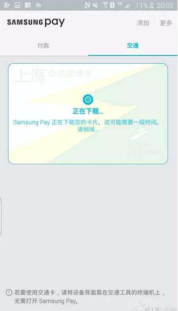 今日,微博网友@丁魁丶Dean爆料,目前在上海测试地铁,公交车,出租车均可使用Samsung Pay。据了解,该功能仍然处于内部测试阶段,并未对外开放,预计很快会正式上线。