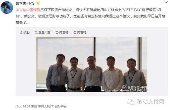 中兴联手中国银联 ZTE PAY加入云闪付大家族
