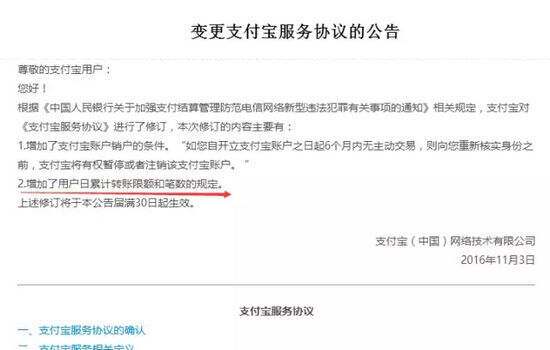 上图为自12月1日起,支付宝账户对于“转账”笔数和每日转账限额的通知