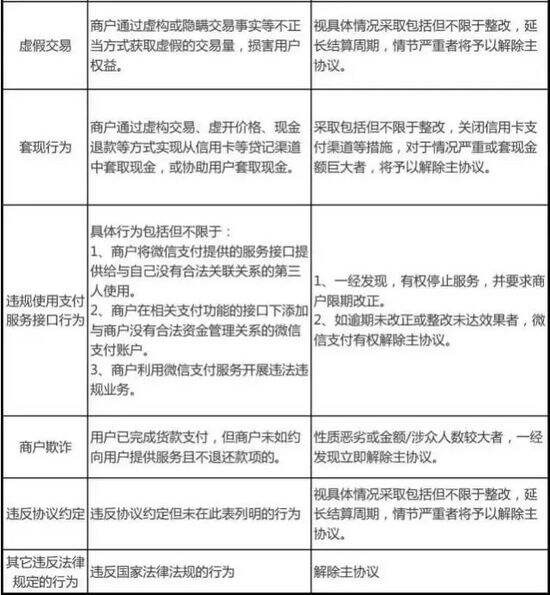 微信支付发布关于违规商户处理规则的公告:
