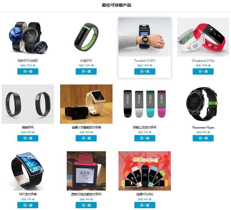 不知不觉,2016年度“金松奖”评选投票结束在即。作为“老奖项”之一的最佳可穿戴产品奖也渐渐有了眉目,目前刷刷手环全能款、Clingband 2 Pay、Ticwatch 2 NFC、妙嘀手环票数均超过了1850票,较为接近。