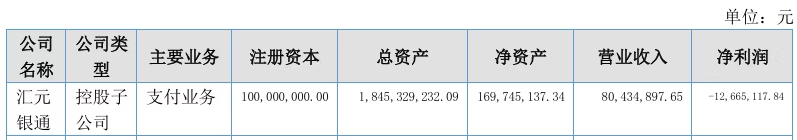 8月1日,汇元科技发布2025半年报,旗下持牌支付机构为汇元银通(北京)在线支付技术有限公司。报告期内,汇元银通营收为8043万元,净利润为亏损1267万元。