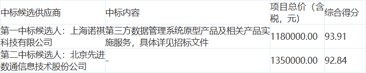 广州农村商业银行第三方数据管理系统项目中标候选人公示
