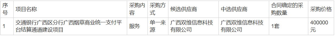 交行广西区分行广西烟草商业统一支付平台结算通道建设项目结果公告