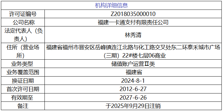 福建一卡通被注销支付牌照