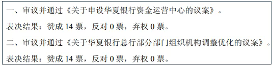 9月29日,华夏银行发布的第九届董事会第十一次会议决议公告显示,会议审议并通过《关于申设华夏银行资金运营中心的议案》和《关于华夏银行总行部分部门组织机构调整优化的议案》。
