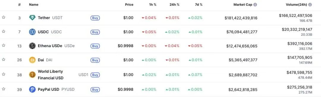 截至目前,PYUSD市值约23亿美元,在全球稳定币中排名第六,仅次于USDT、USDC、USDE、DAI与USD1。