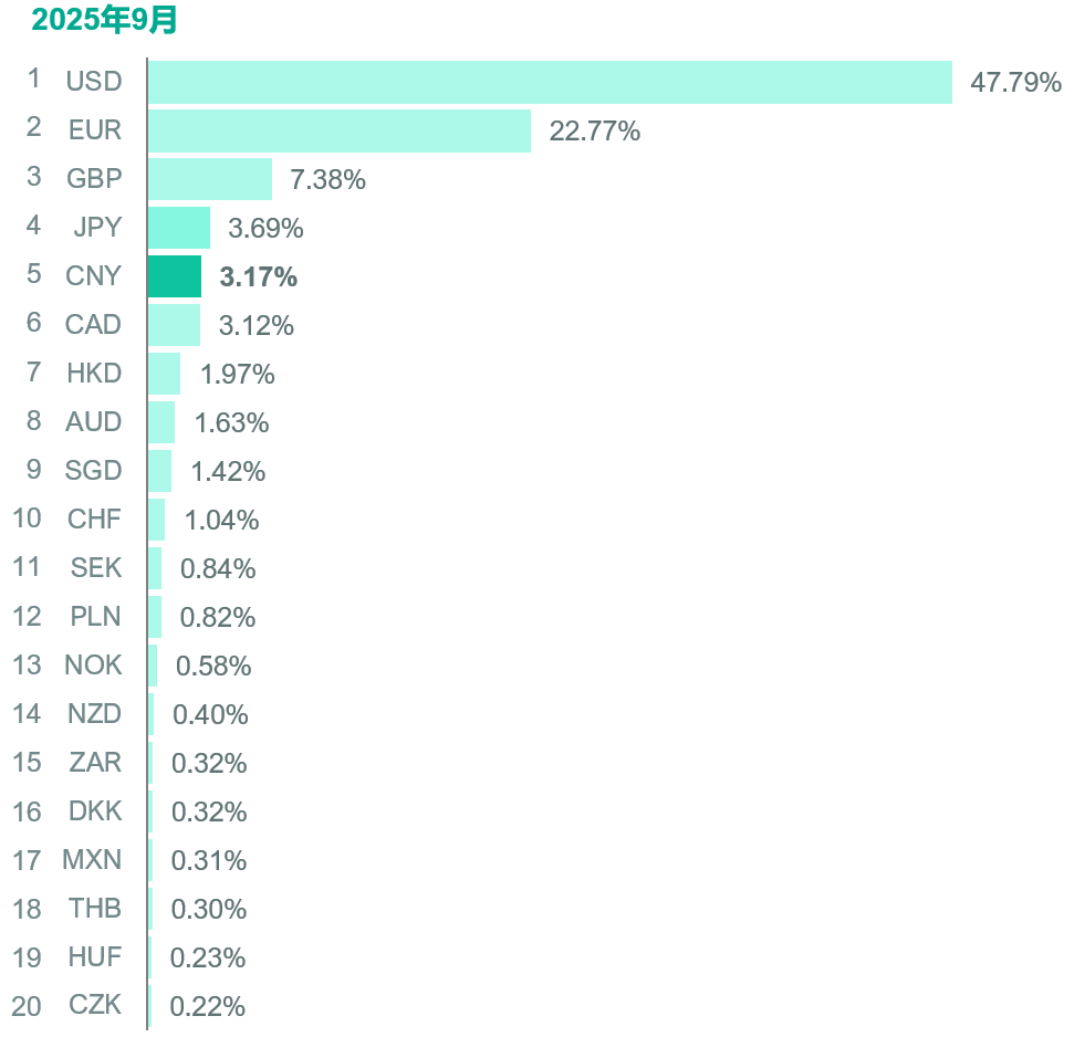 - Swift:2025年8月人民币在全球支付中占比2.93%