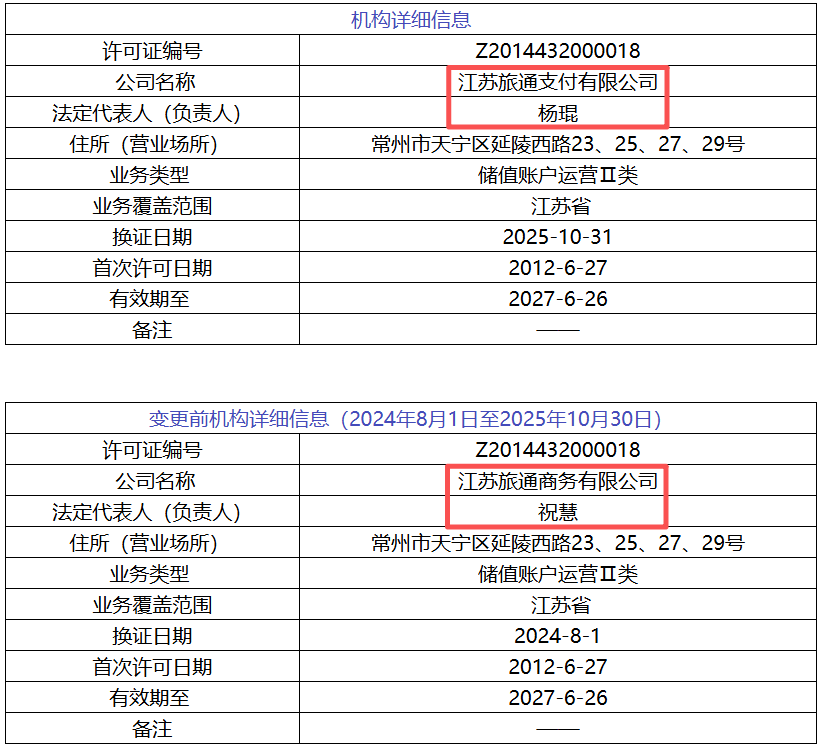 据移动支付网了解,旅通支付成立于2011年,注册资金为1亿元。总部位于江苏常州,由常州投资集团有限公司、龙城产业投资控股集团有限公司和常州信辉商业保理有限公司三家共同出资,专营江苏省内预付卡发行与受理业务。于2012年获中国人民银行颁发的《支付业务许可证》,随即开展支付业务,并于2022年续牌成功。2024年支付业务类型调整后,旅通支付业务类型调整为“储值账户运营Ⅱ类”,业务覆盖范围为江苏省。