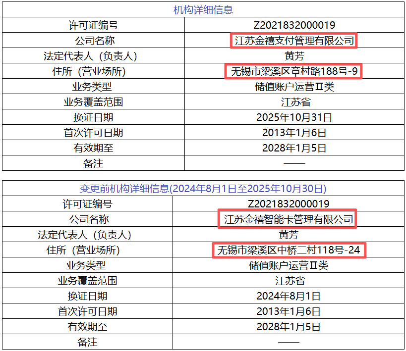 据移动支付网了解,金禧支付成立于2011年,注册资本为3000万元。于2013年获得《支付业务许可证》,中国人民银行准许其在江苏省范围内开展预付卡发行与受理业务。2024年支付业务类型调整后,金禧支付业务类型调整为“储值账户运营Ⅱ类”,业务覆盖范围为江苏省。