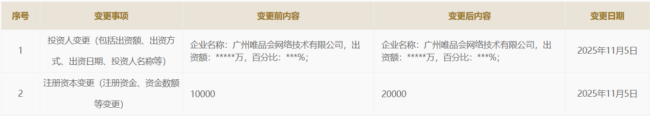 唯品支付完成工商变更,注册资本翻倍至2亿元