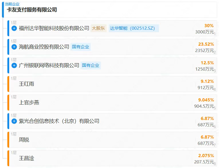 公开信息显示,海航商业控股早在2011年成为卡友支付主要股东,彼时持股比例为53.52%。2015年9月,卡友支付被上市公司福州达华智能科技股份有限公司(简称“达华智能”)收购,后者期望投入更多资源以智能终端及应用为载体,打造融合支付平台并为企业和商户提供支付解决方案。