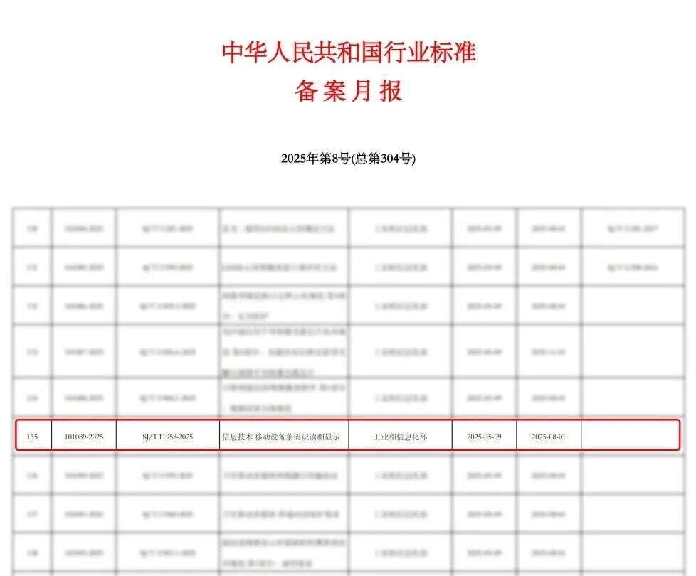 近日,工业和信息化部发布的行业标准《信息技术移动设备条码识读和显示》(标准号:SJ/T 11958-2025)已正式实施,成功填补了国内移动设备条码识读标准的空白。该标准由新大陆数字技术股份有限公司主持,中国电子技术标准化研究院、福建省产品质量检验研究院、蚂蚁科技集团股份有限公司、福建新大陆自动识别技术有限公司等9家单位共同参与制定。其中,蔡春水、李霖、郭锋等新大陆专家作为主要起草人,深度参与了标准关键技术条款的论证与制定。