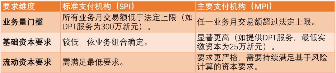 第二,关键的财务门槛要求:简单来说,业务规模(以月交易额衡量)决定申请类别:标准支付机构(SPI)或大型支付机构(MPI)。MPI因规模大、风险高,须满足更严格的资本与流动性要求,企业需自行监控交易额,超标即须升级为MPI。