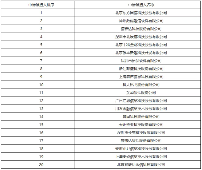 - 江西农商联合银行新版资金业务管理系统项目中标候选人公示