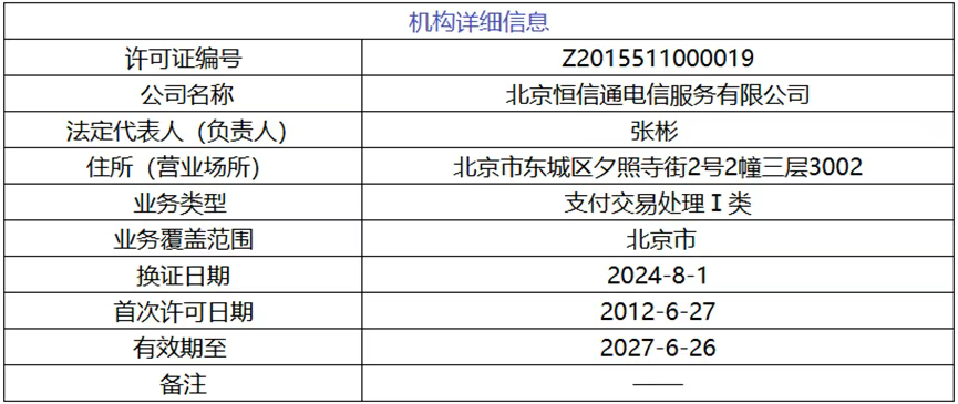 2022年6月续展成功后,其支付牌照有限期延长至2027年,目前尚未更换长期有效牌照。另外,恒信通母公司北京易付通数字科技服务股份有限公司(简称“易付数科”)于2016年在新三板挂牌,收单业务则是上市公司最重要的业务之一。