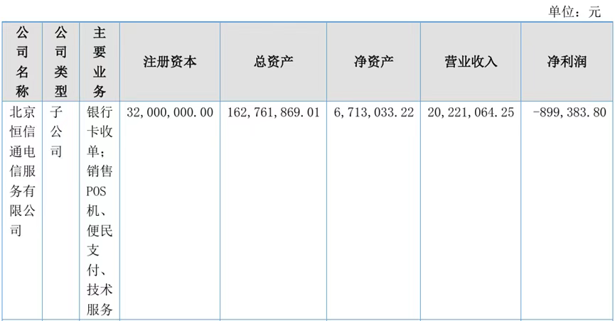 易付数科2025年半年度报告显示,去年上半年恒信通营收约2022万元,净利润为亏损约90万元。