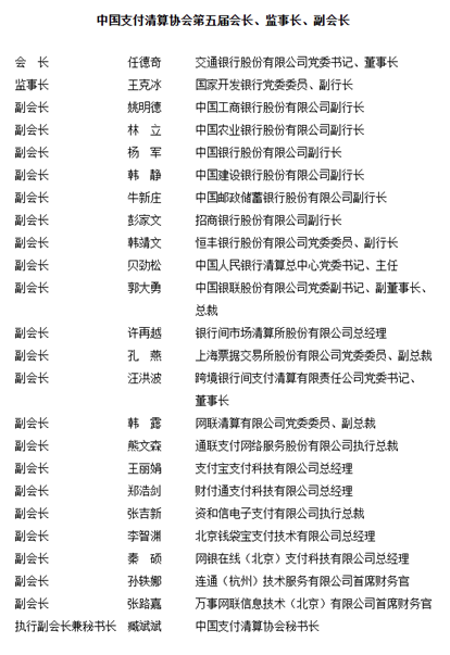 中国支付清算协会新一届领导换届,交行董事长出任会长