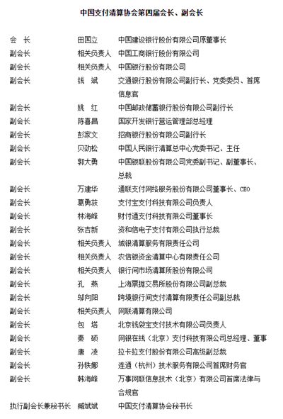目前协会官网已更新相关信息。移动支付网还注意到,相比上一版的领导机构名单(中国支付清算协会第四届会长、副会长),协会副会长单位有所减少,从24个变为22个。
